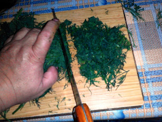 Отже, підготовлюємо кріп: відрізаємо корінці, обриваємо м'якенькі гілочки, відділяючи їх від стовбурних гілячок (їх я сушу і потім використовую для консервації огірків та помідорів). За потреби - вимити та висушити.